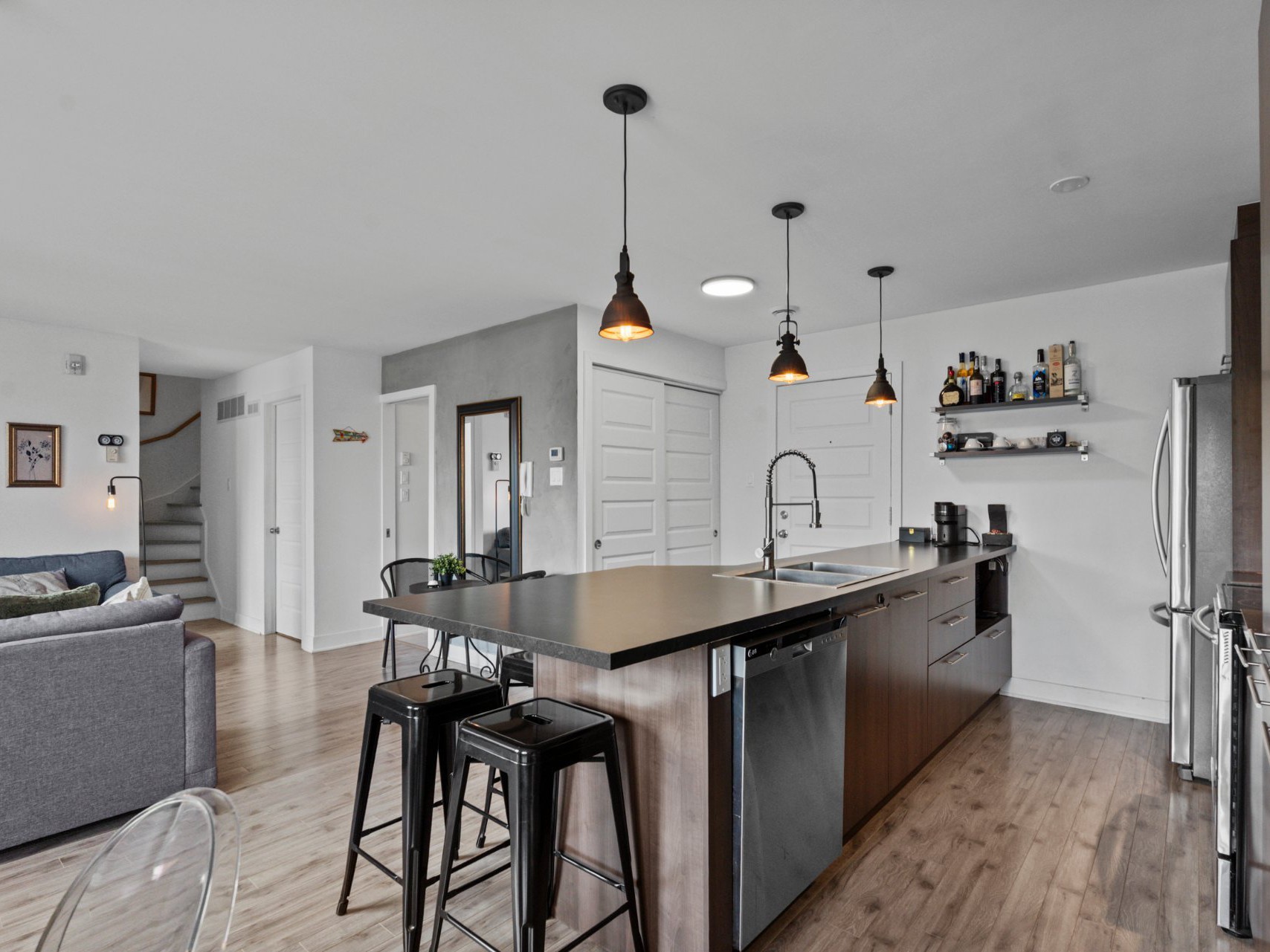 Rareté sur le marché : superbe condo 5 ½ à vendre à Mirabel, secteur Saint-Canut.Ce spacieux condo sur deux étages offre une configuration idéale pour les familles ou les professionnels en quête de confort et de fonctionnalité. Il comprend trois chambres à coucher, dont deux situées au troisième étage et une au deuxième, une salle de bain complète ainsi qu'une salle d'eau pratique. L'espace de vie est lumineux et convivial, avec une cuisine fonctionnelle dotée de nombreux rangements, d'un comptoir-lunch, et ouverte sur la salle à manger et le salon.