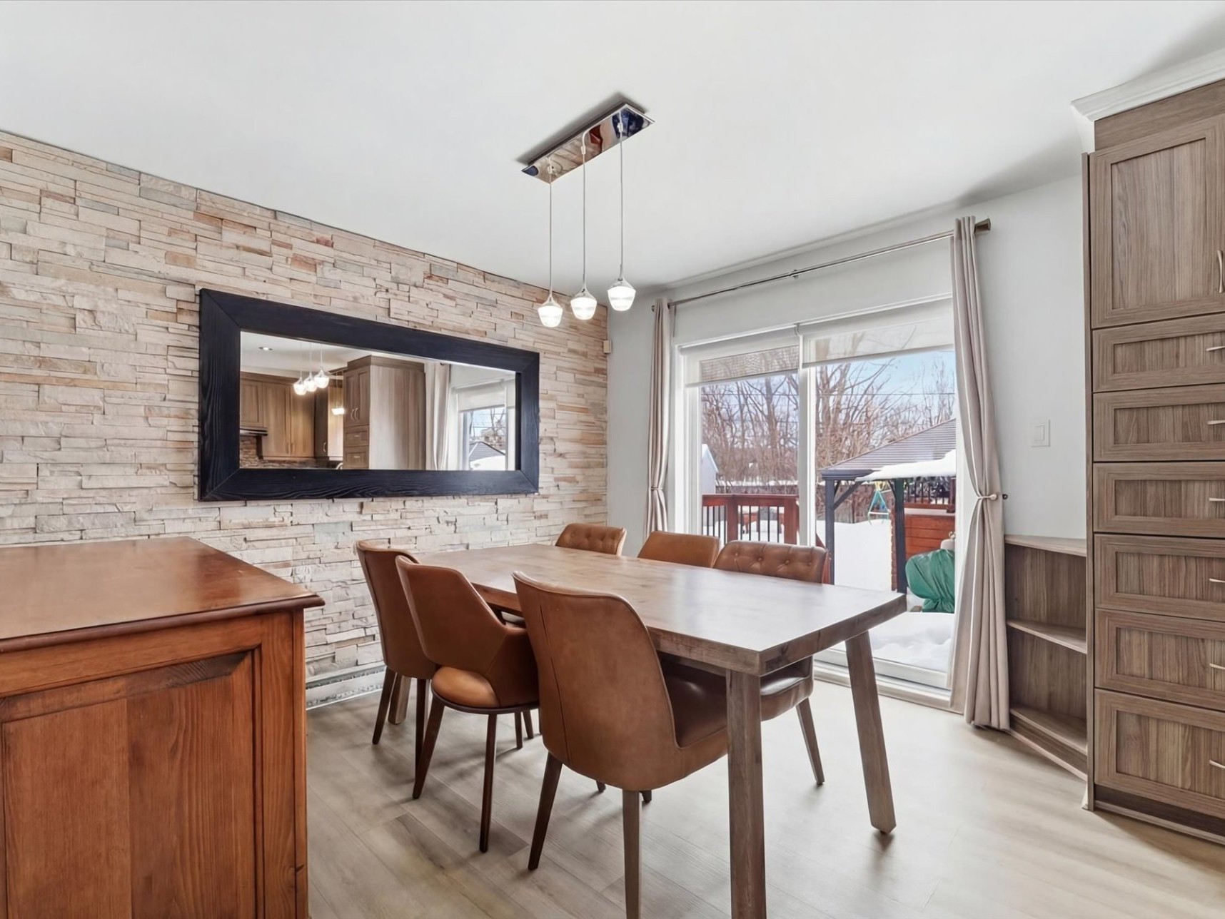2017 : Remplacement des armoires de cuisine par des armoires en polyester, ajout du câblage réseau et filage cinéma maison, ajout de luminaires encastrés, installation de la piscine hors terre, construction du garage, installation de l'aspirateur central, ajout d'une remise et d'un nouveau patio.
