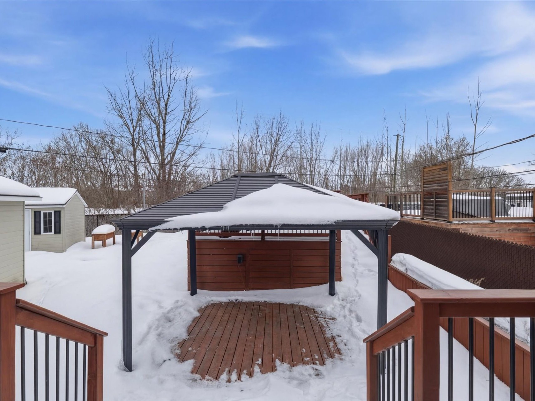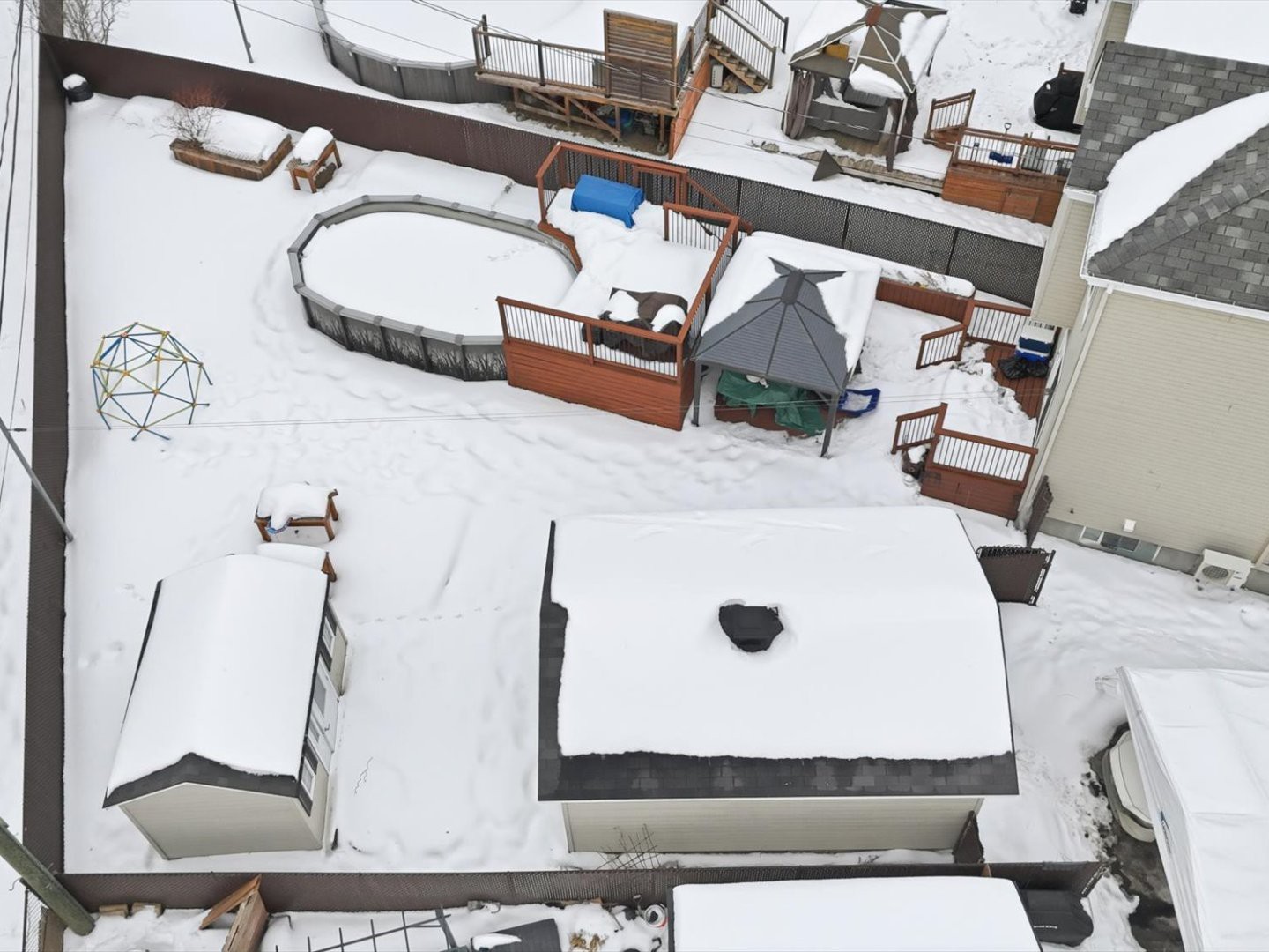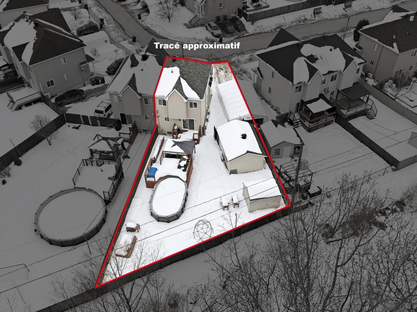 Lave-vaisselle, fixtures/luminaires, thermopompes murales (2), miroir de la salle d'eau, miroir de la salle à manger, trois ventilateurs (chambre à l'étage), stores, système de filage cinéma maison, 6 supports de télévision, aspirateur central et accessoires, ouvre-porte garage, piscine hors-terre et accessoires, remise, gazebo, borne de recharge électrique, tête de lit de la chambre du sous-sol, armoire Pax chambre sous-sol, pôles de rideaux et rideaux.Exclusions